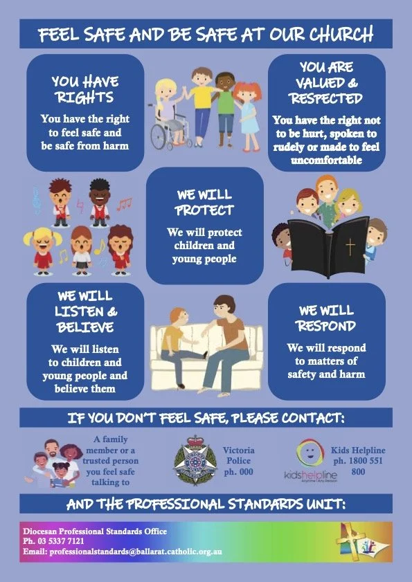 Star of the Sea Catholic Parish holds the care, safety and wellbeing of children, young people and vulnerable adults as central to the responsibilities of the Church. This page provides information and links relating to our commitment as a parish to being a safe place for all.